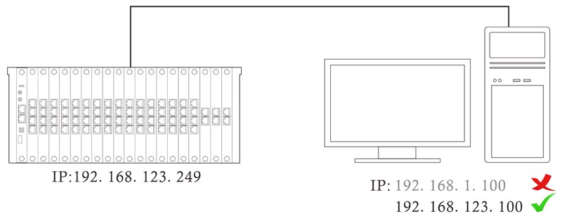 国威GW2000电脑管理、调试1:使用8芯网线,一端接交换机的LAN口,另一端接PC的网口。