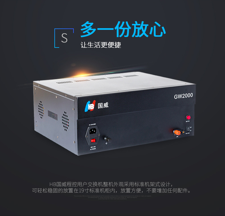 1:铁壳机架式语音通信设备,支持32外线256内线、20个业务槽位、4个外线槽位(含1个内外线复用槽位)15个分机槽位。
