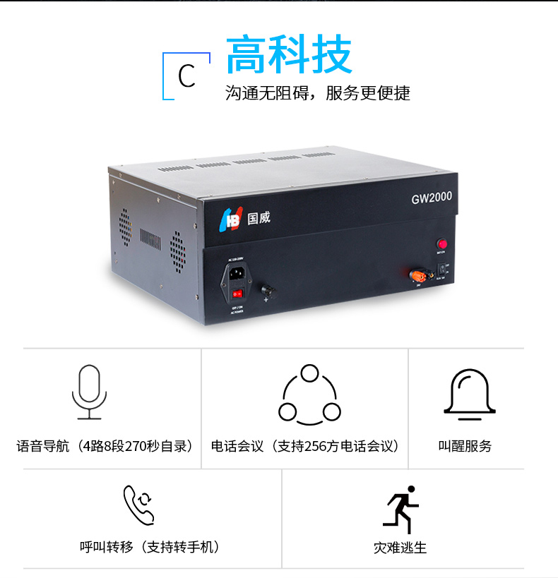 14:支持双电源:AC110V-220V,后备DC24V的双电源接入系统,确保语音系统停电可正常工作。