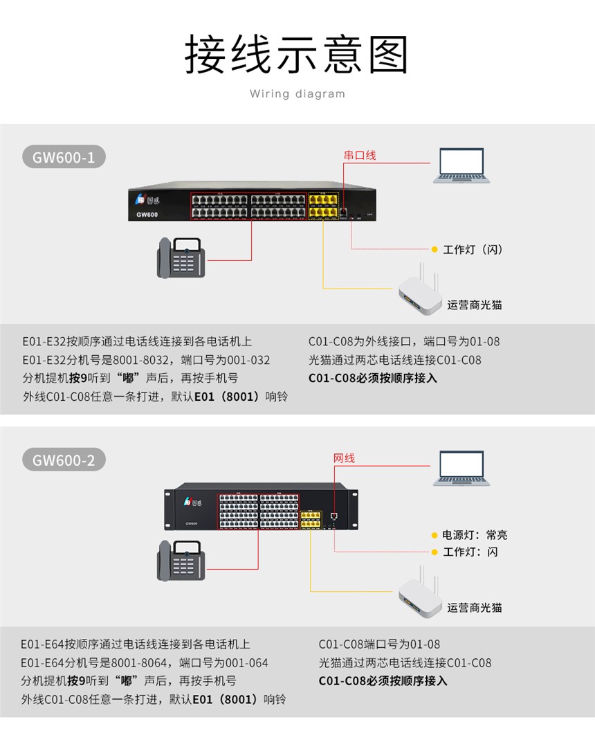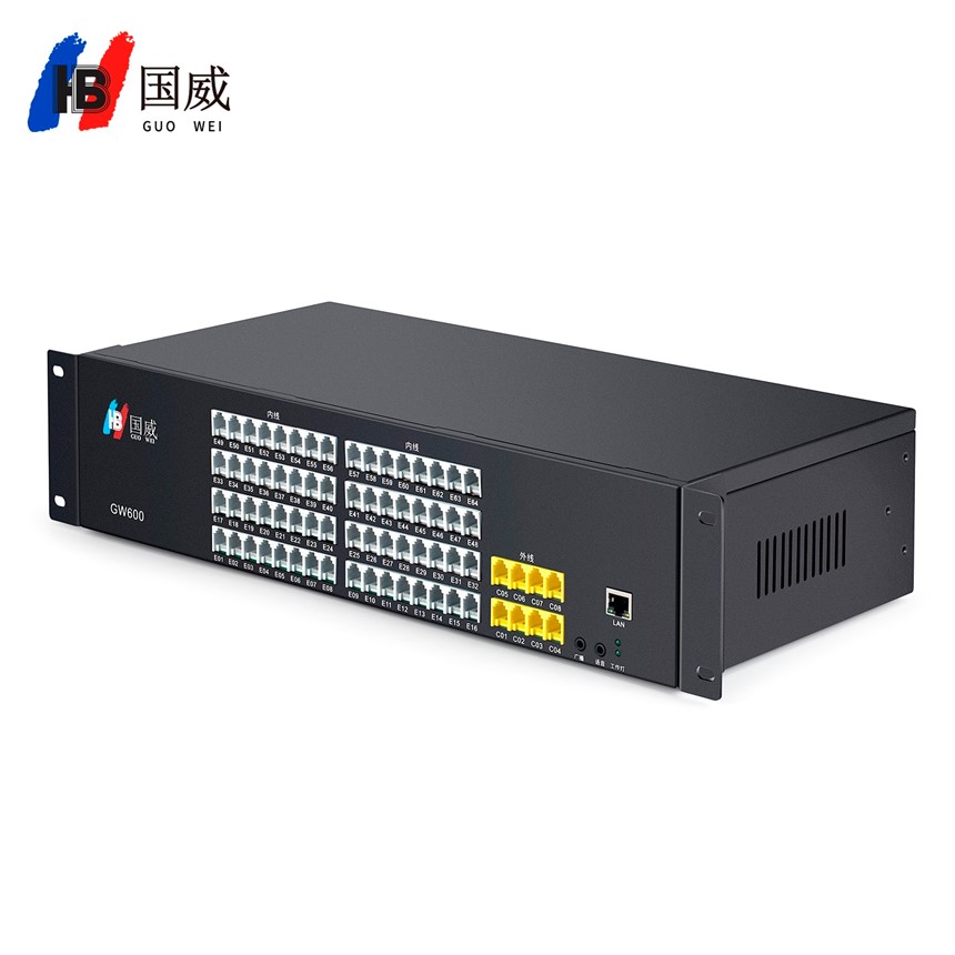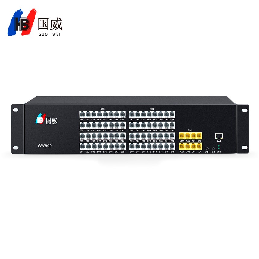 国威GW600(2)程控交换机通信设备系统: 外线:4/8外线。 分机:64分机用户。 外线板规格:4路忙音检测RJ11端口外线板。 分机板规格:8路RJ11端口分机板。