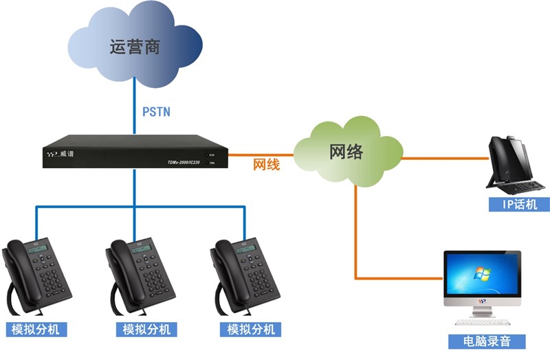 威谱TDMx-2000 IC系列产品提供B/S架构的WEB配置工具,本地及远程管理维护方便,同时也设有内外网访问区分的网络安全保护机制,提高系统运行的安全及可靠性。用户分机端口集模拟、数字、SIP话机应用为一体,当模拟用户分机端口用完,还可通过SIP用户端口扩展连接网关,转换模拟用户端口进行使用,通信组网能力非常强大,具备高扩展性、高可靠性、高兼容性、高稳定性等特征。