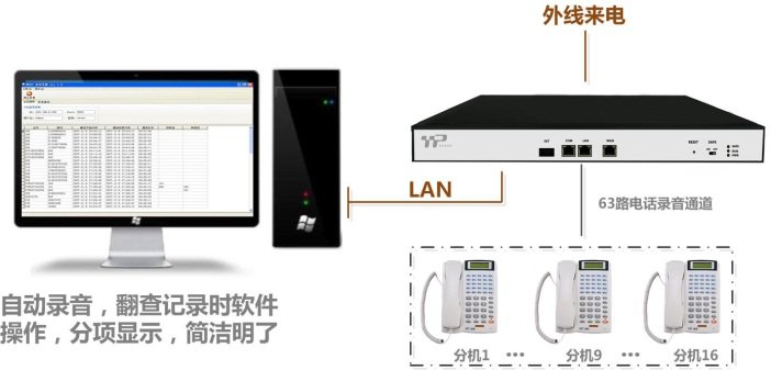 ■ 电话录音系统 内置63路电话录音功能,可同时对16条外线进行录音,录音系统使用PC或服务器的硬盘保存录音数据,录音时间更长,100G硬盘可以录音4000个小时,录音系统软件不需进行任何的人工配置,软件安装完毕后将通过局域网自动连接到交换机进行录音,简单易用。 |